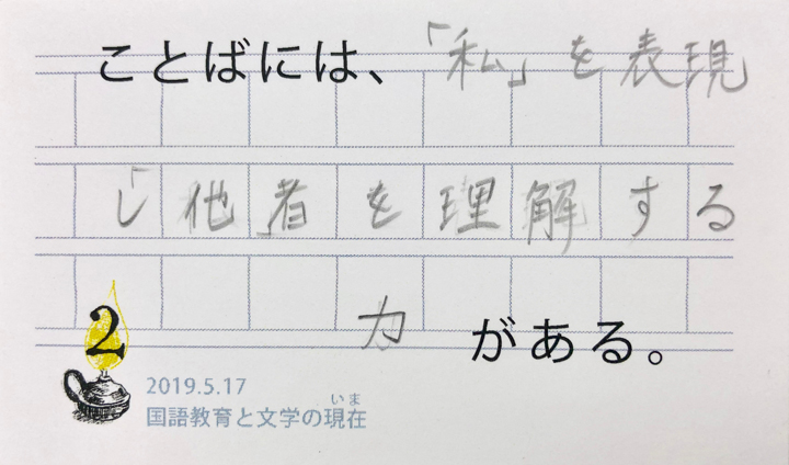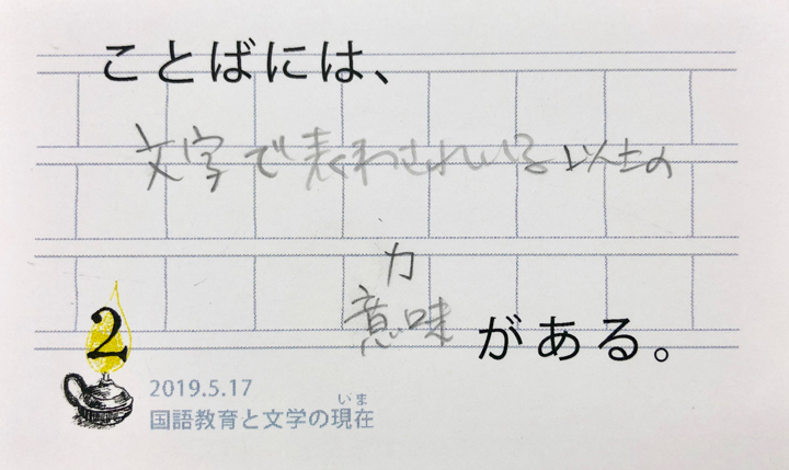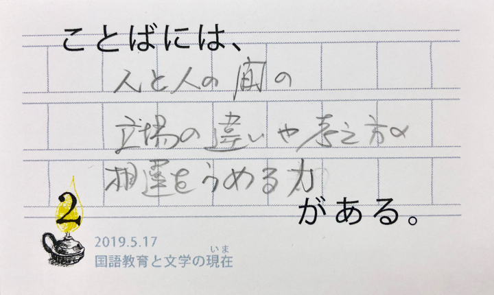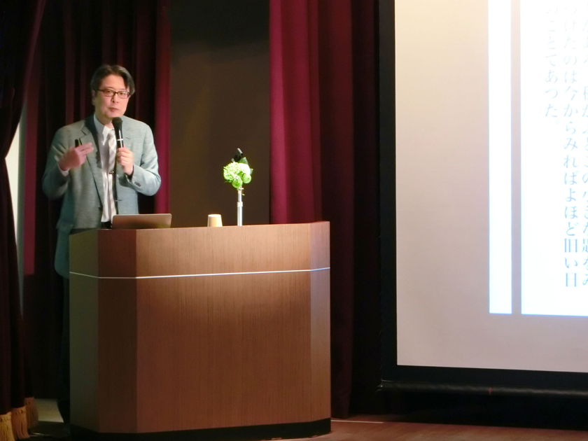 講演の後半では、教材のサンプルとして『銀の匙』が取り上げられました。会場は約 100年前の『銀の匙』の作品世界に引き込まれ、「読む」ことによって育まれる豊かな思索や情報を読み解く体験を通じて、不透明な現代だからこそ不明確さに耐える姿勢が必要とされていることや「ことばと文学」の大きな可能性を実感しました。
