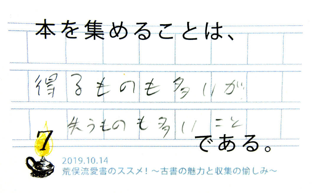 荒俣先生は憧れの方ですので、講演会に参加できるだけでも大変嬉しかったです。「古書」とのことでしたが、「希少本」のお話で、スケールが大きい。話に出てくるお名前も坪内逍遥からナポレオン…と多岐に渡り、ついてゆけませんでした。それが、また楽しかったです。(40代)