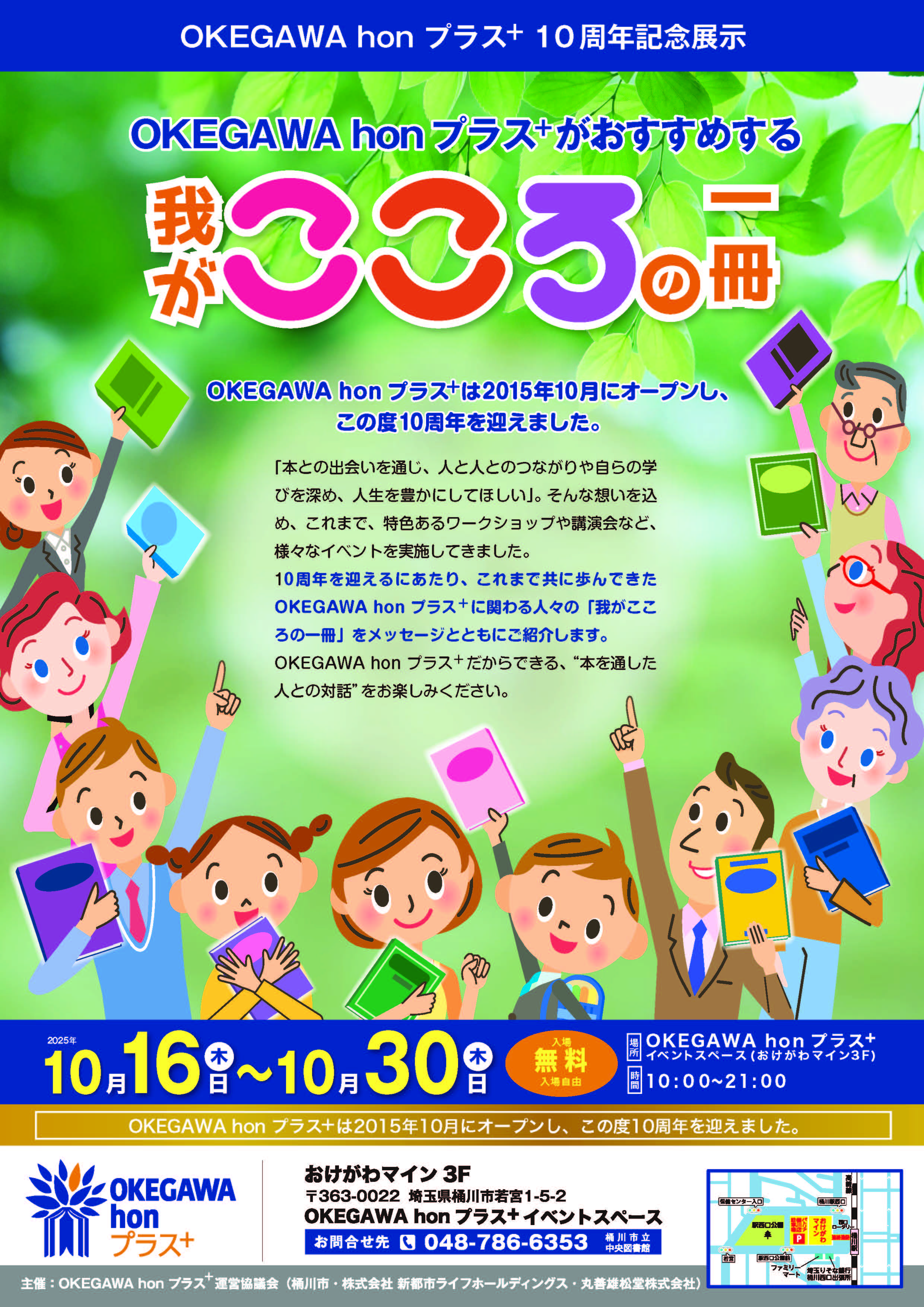 本展示は、2025年10月に同施設が10周年を迎えることを記念したもので、OKEGAWA hon プラス⁺運営協議会(桶川市・株式会社新都市ライフホールディングス・丸善雄松堂)が主催いたします。