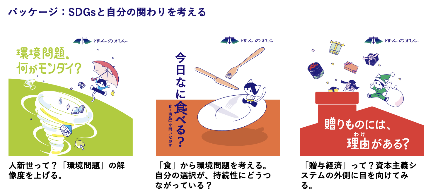 「ほんのれん」では、課題別3テーマパッケージでの導入・活用をおすすめしています。テーマを横断することで、より多角的な思考・探究が可能になります。